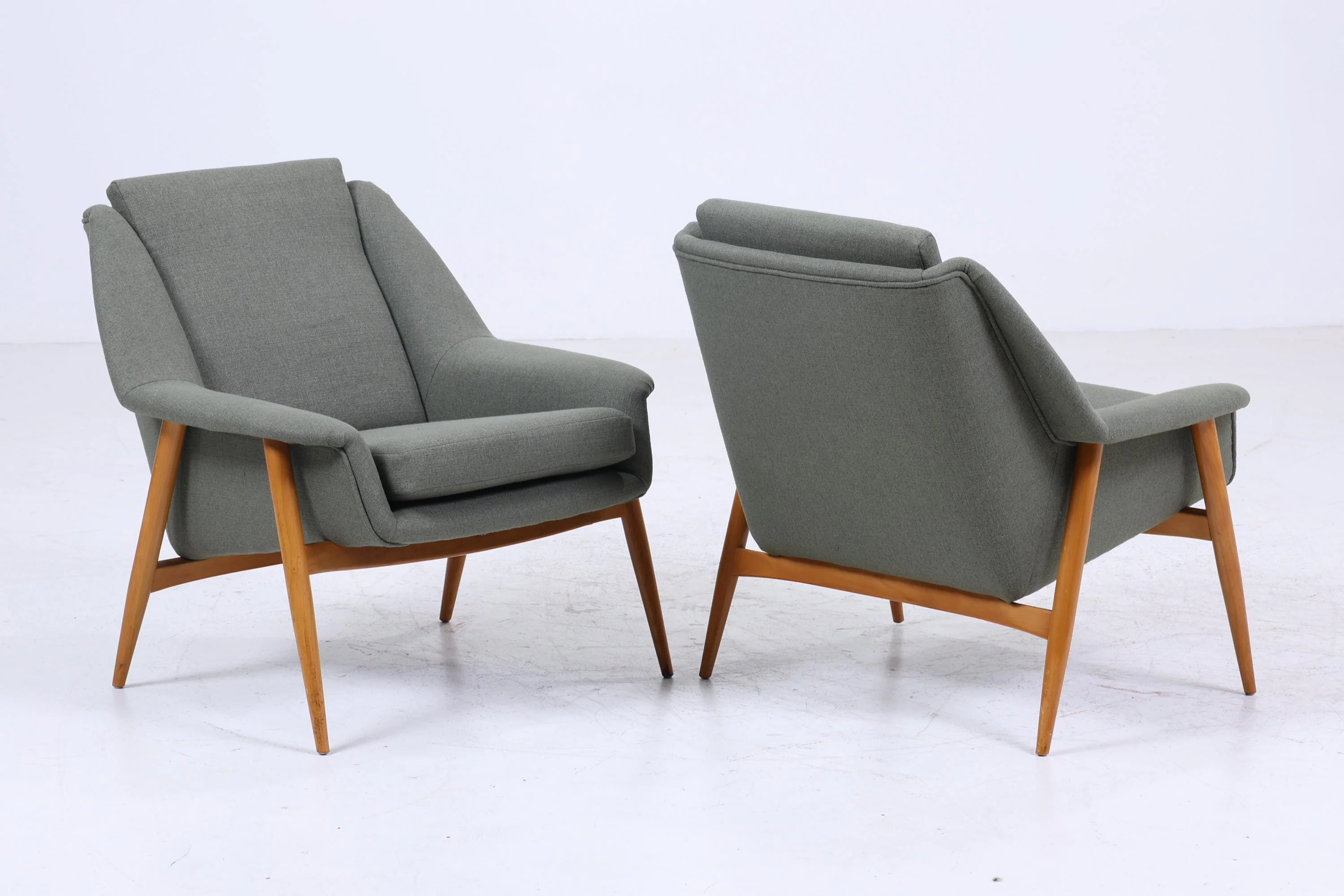 2 Vintage Armlehnsessel von Wilhelm Knoll für Cassina 60er Jahre | Design Mid Century Stuhl Olivgrün Retro Holz Wohnzimmer 70er