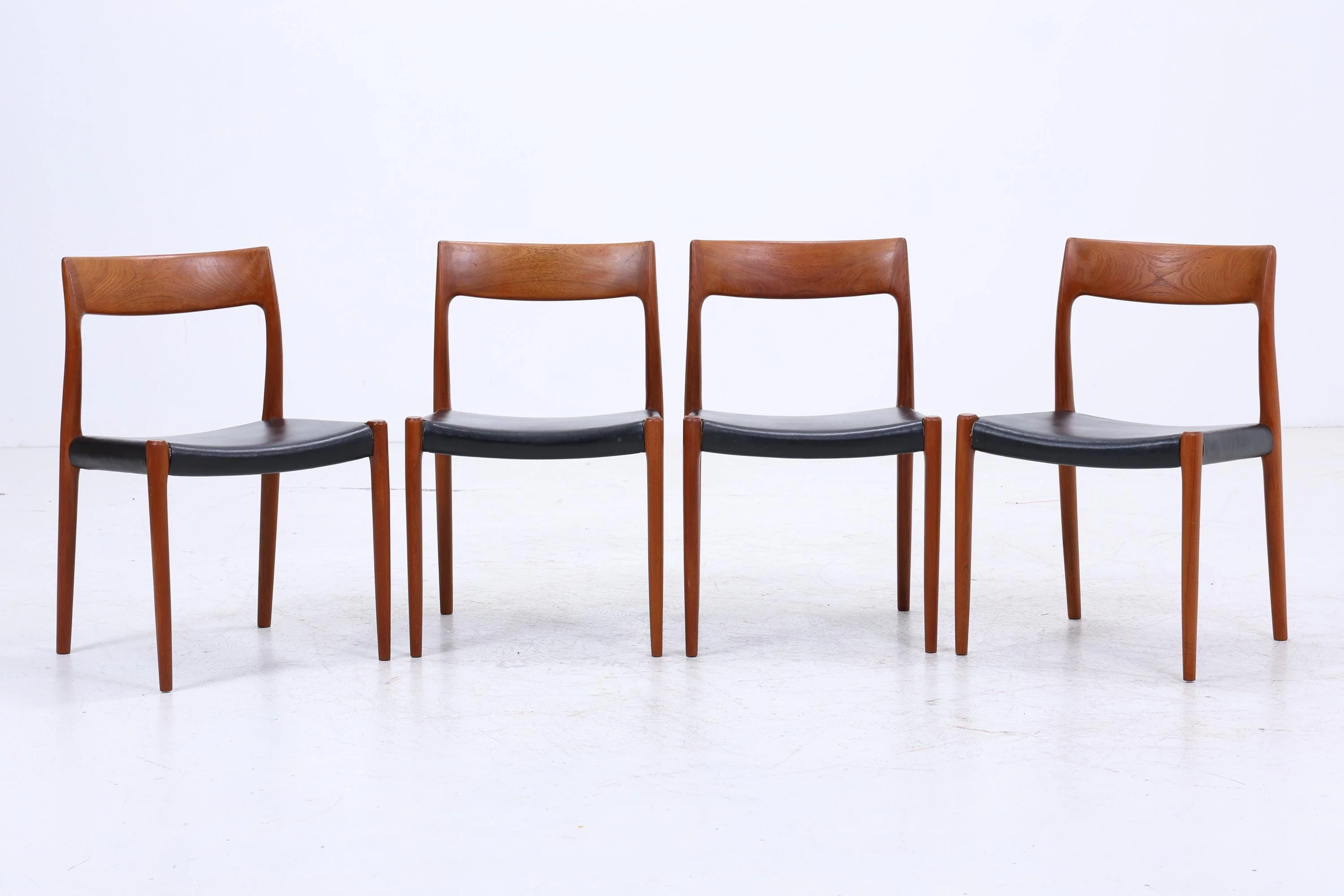 4er Set Teak Stühle von Niels Otto Møller für JL Møllers | Mid Century Danish Design Leder Stuhl | Vintage Designer
