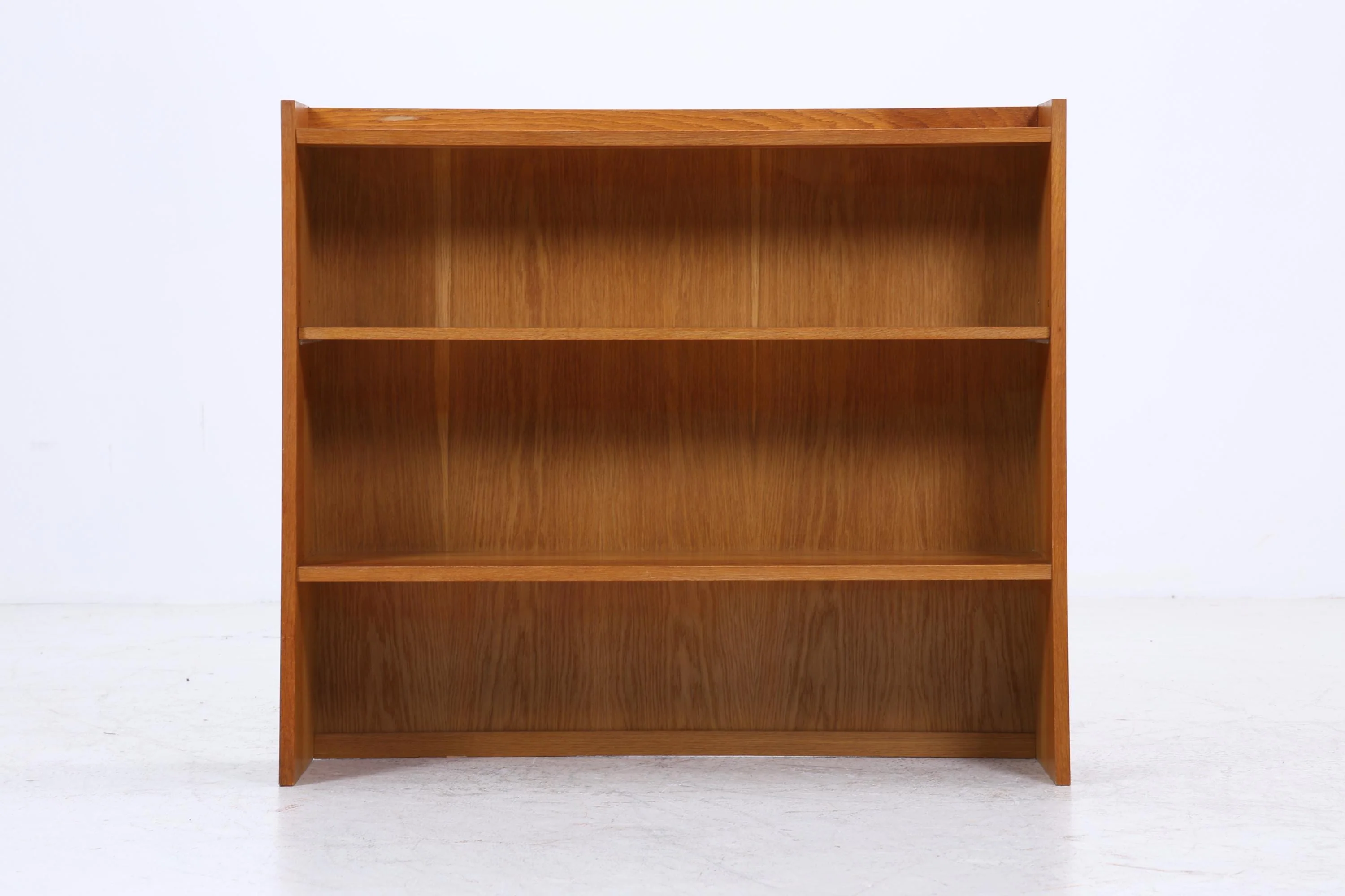 Hellerau Bücherregal aus Eiche mit klarer, funktionaler Form und ruhiger, offener Struktur. Zwei Böden und die reduzierte Aufteilung geben ihm diese typische DDR-Sachlichkeit – schlicht, direkt und ohne unnötige Spielerei.