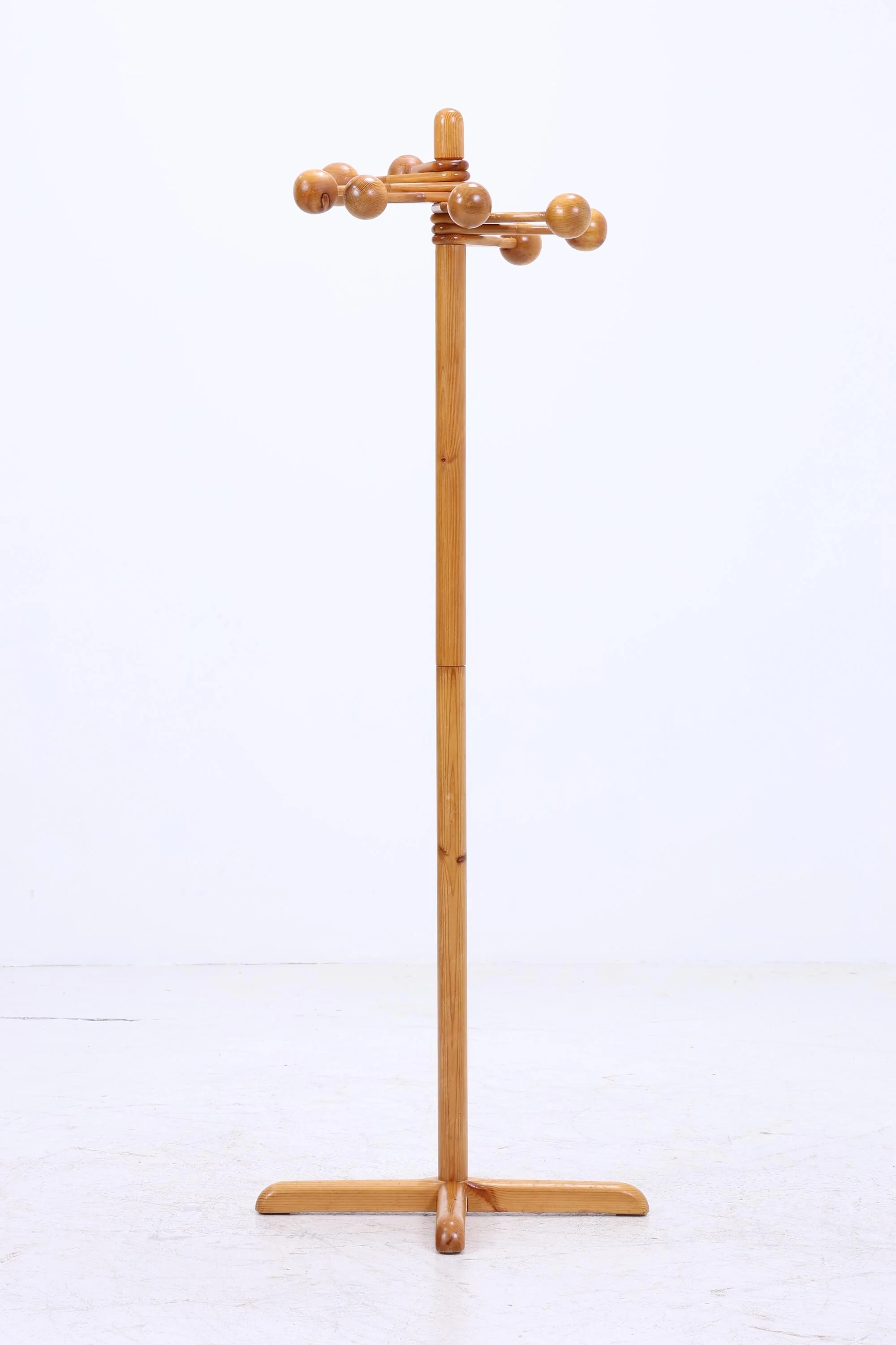 Vintage Rainer Daumiller Garderobe aus Kiefernholz mit drehbaren kugelförmigen Haken | Mid Century Design Kleiderständer Retro 60er