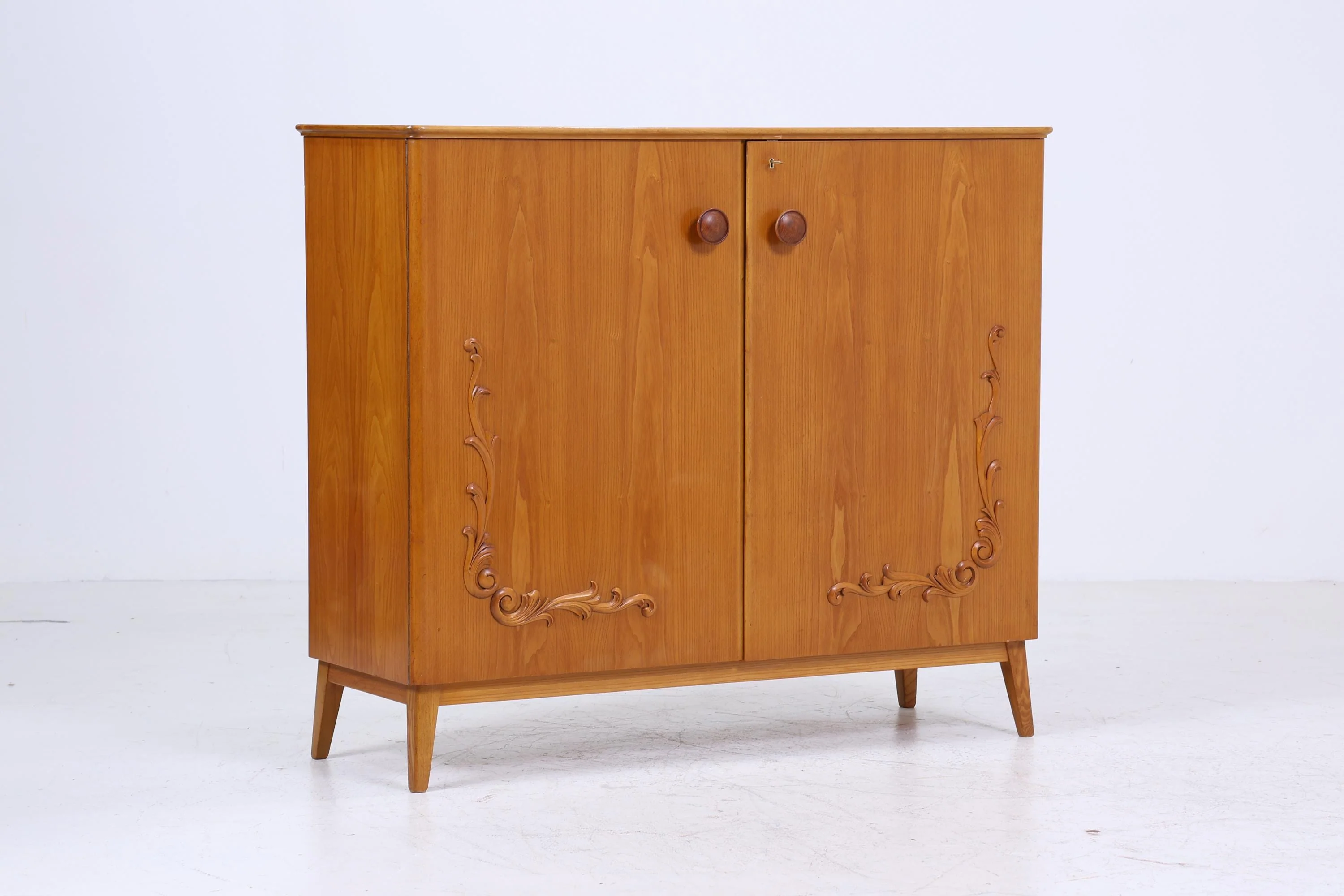 ❌SALE❌ Chippendale Vintage Wäscheschrank aus Holz | Mid-Century 50er Jahre Schrank mit Schnitzerei | 60er Retro Fächerschrank